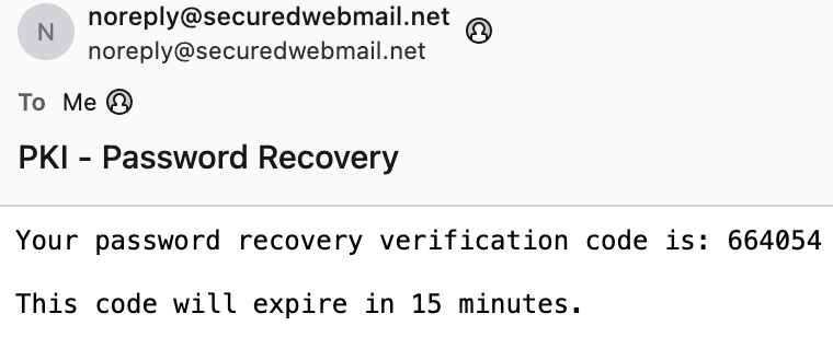 If your input was correct, you'll receive an email with a code on your recovery address. It looks like this: