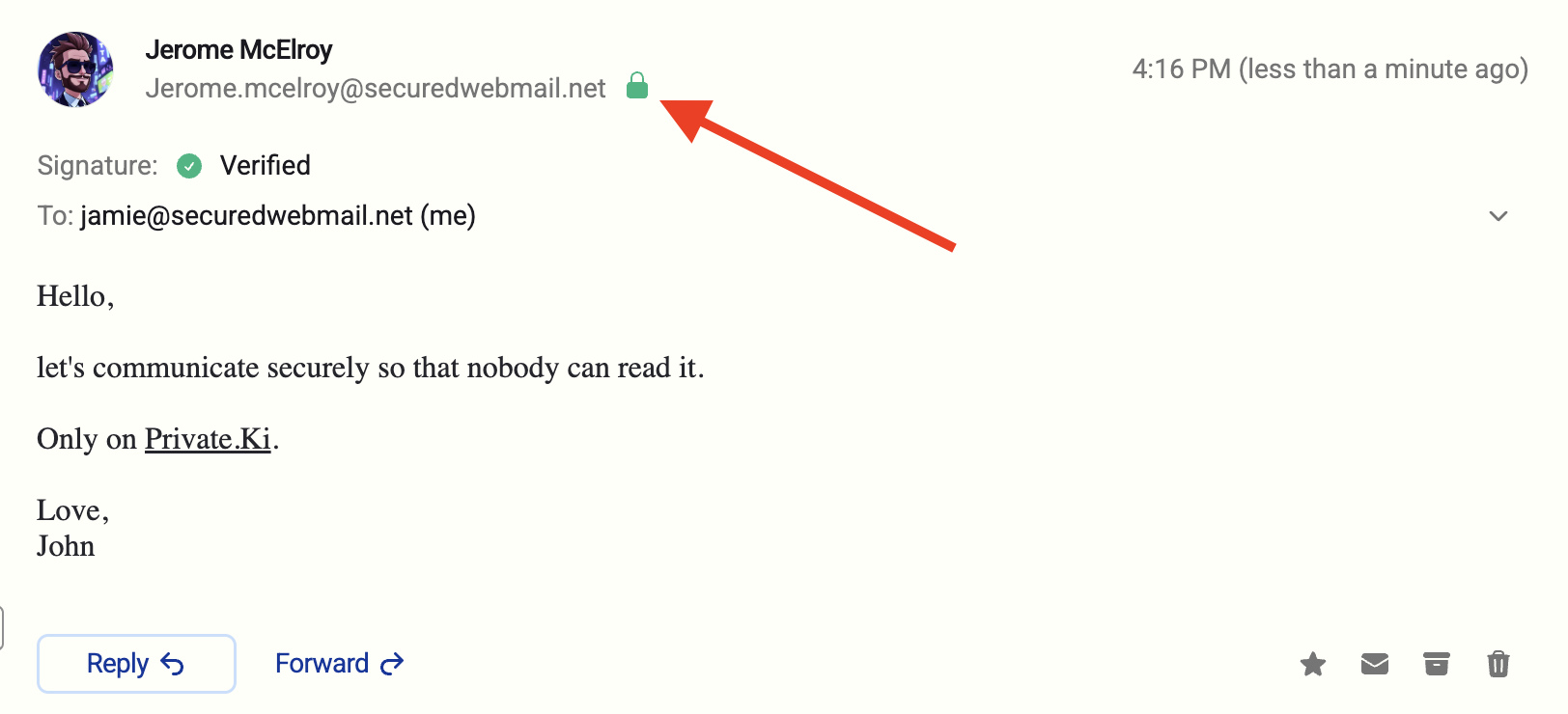 It’s natural to want assurance that an email you sent or received is indeed encrypted and secure. Private.Ki provides indicators so you can verify the encryption status of messages.