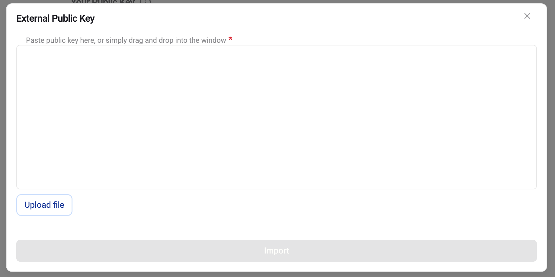 Just click on Import, and the public key will be imported automatically: