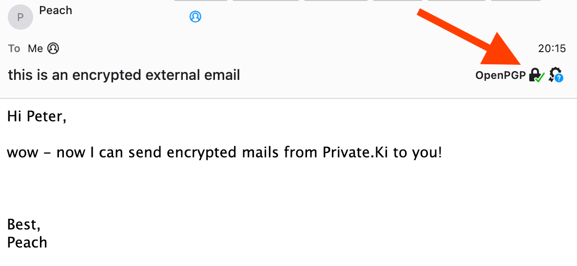 If the recipient uses, for example, Thunderbird, the software will show that the message is encrypted: